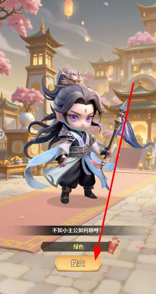 1、新手玩家在输入框填写角色称呼,确认后点击提交按钮,完成角色创建流程,开启在游戏中的冒险旅程。
