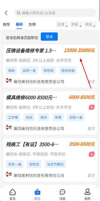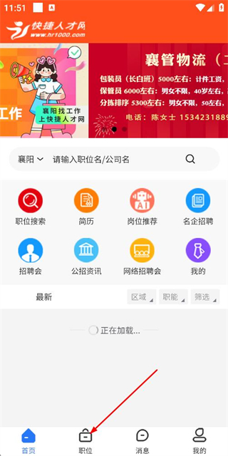 1、在快速人才网首页点击底部的职位选项,进入职位列表页面。