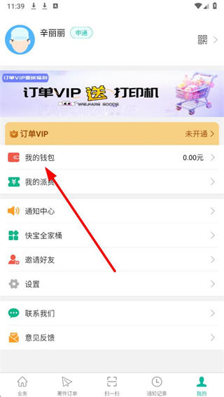 1、进入快宝快递员应用,在我的页面,点击我的钱包选项,进入钱包页面。