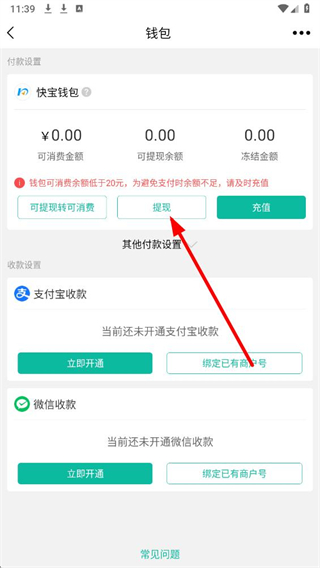 2、在钱包页面中,点击提现按钮,进入提现页面。