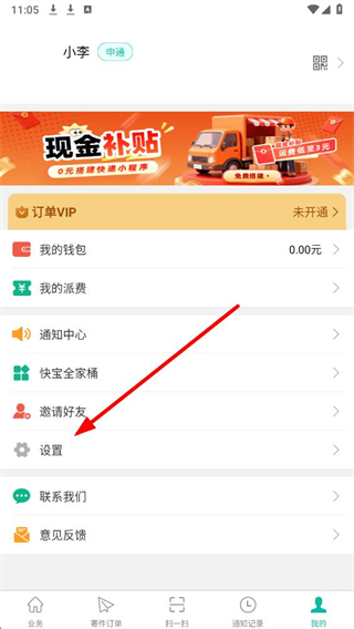 1、进入快宝快递员应用,点击设置选项,进入设置功能页面。