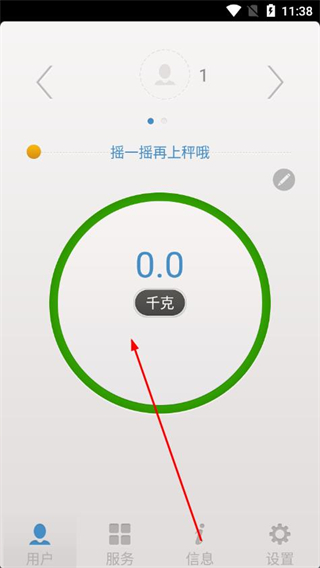 3、返回主界面,按照提示摇一摇再上秤,即可使用秤进行体重测量。