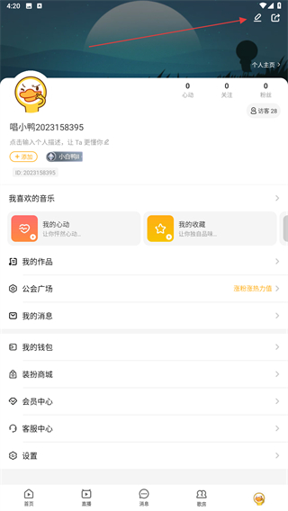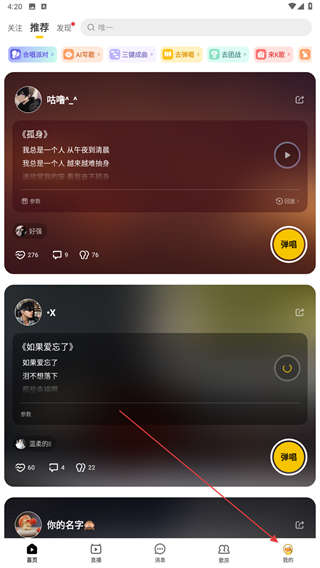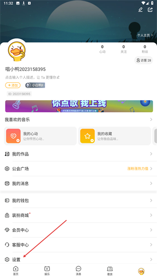 1、打开唱鸭应用,点击底部导航栏的我的选项,进入个人中心页面。