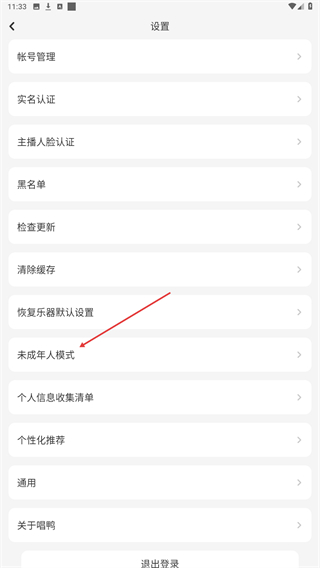 3、在设置页面里,找到未成年模式对应的选项并点击进入。