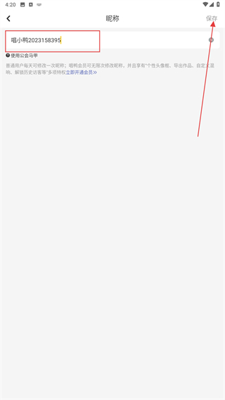 4、在输入框内输入新昵称后,点击保存的按钮即可。