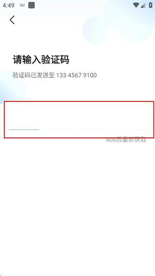 4、进入请输入验证码页面,在对应输入框中填写发送至该手机号的验证码。