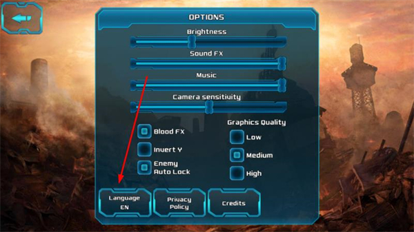 1、在游戏主界面点击OPTIONS按钮,进入设置界面。