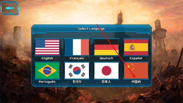 3、在语言选择界面里,点击带有中国国旗的中国的选项,完成中文模式的设置。