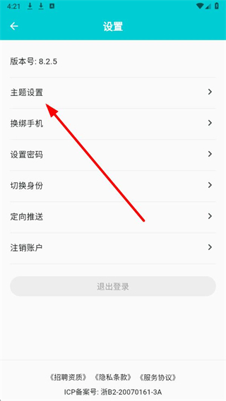 3、在设置页面,点击主题设置选项,进入主题相关的设置界面。