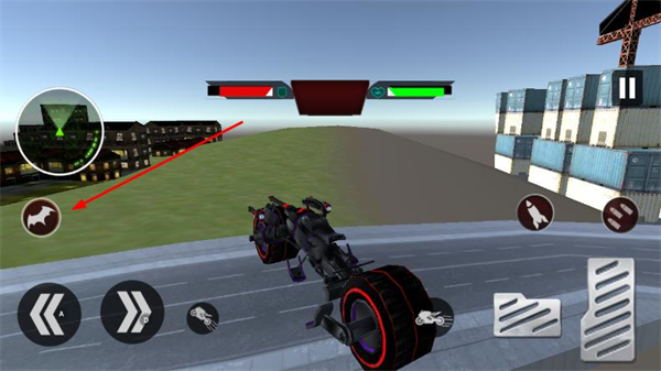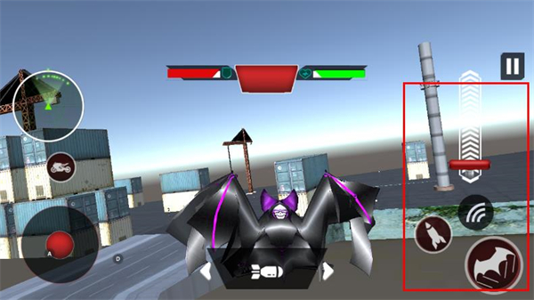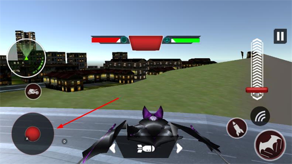 1、在载具驾驶界面中,点击该蝙蝠图标,触发模式切换操作,载具将切换为蝙蝠形态。