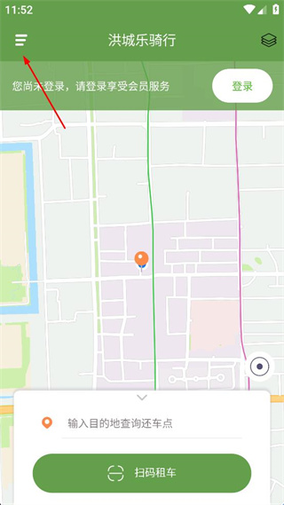 1、打开洪城乐骑行APP首页,找到页面上的“登录”按钮,点击进入登录界面。