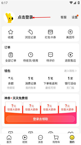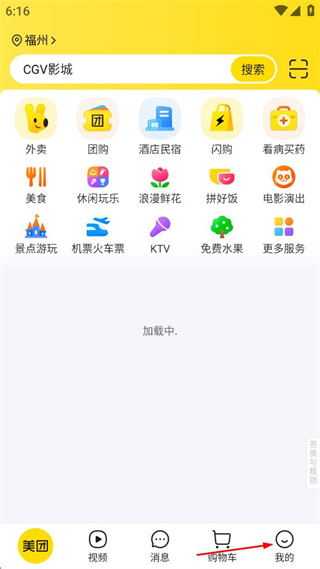 2、进入美团首页,点击底部我的。