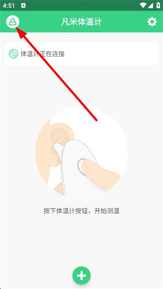 1、打开凡米体温计App,点击页面左上角的用户图标。