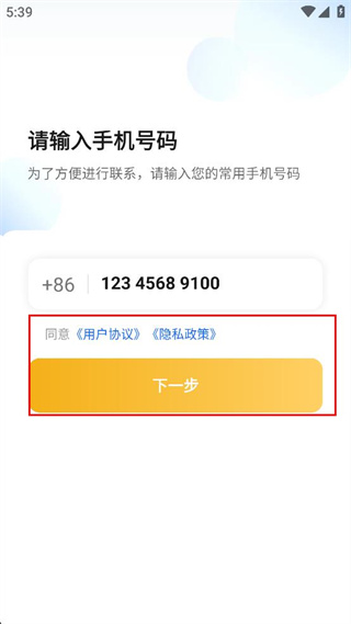 3、勾选同意用户协议及隐私政策选项,点击下一步按钮继续操作。