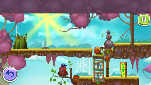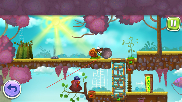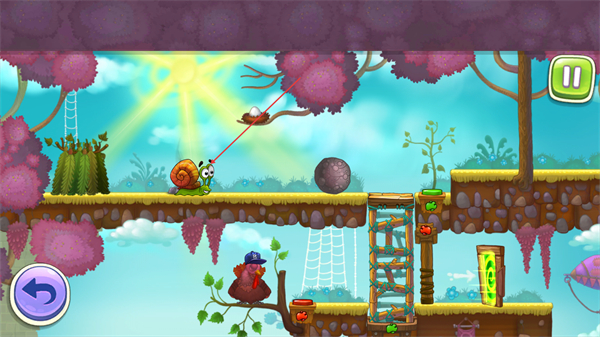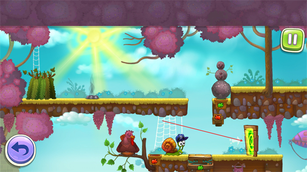 1、操控蜗牛移动,借助绳索拉动物品,推进场景互动,开启关卡流程。