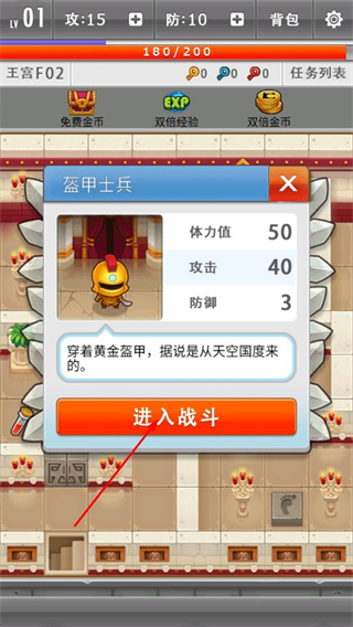 你要击杀各层的小怪及boss,增强角色的属性、收集钥匙以及各类神秘的道具,不断让自己变强,成为拥有神之血裔的超级英雄勇士!游戏中杀敌策略需要先思后行,方能顺利通关。解救公主的艰巨使命就交给你了!还在等什么?魔塔很难,英雄珍重。