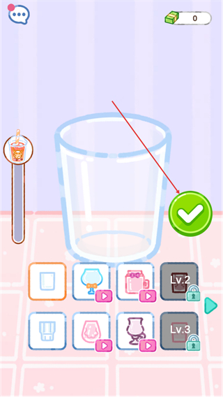 2、选择容器样式,点击√确认,确定制作小吃的容器,推进步骤。