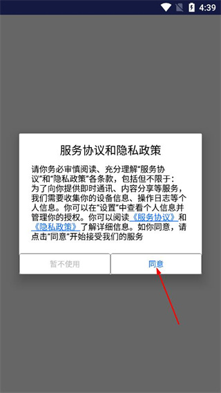 1、进入趣位的服务协议和隐私政策页面,阅读相关条款内容后,点击页面中的同意按钮。