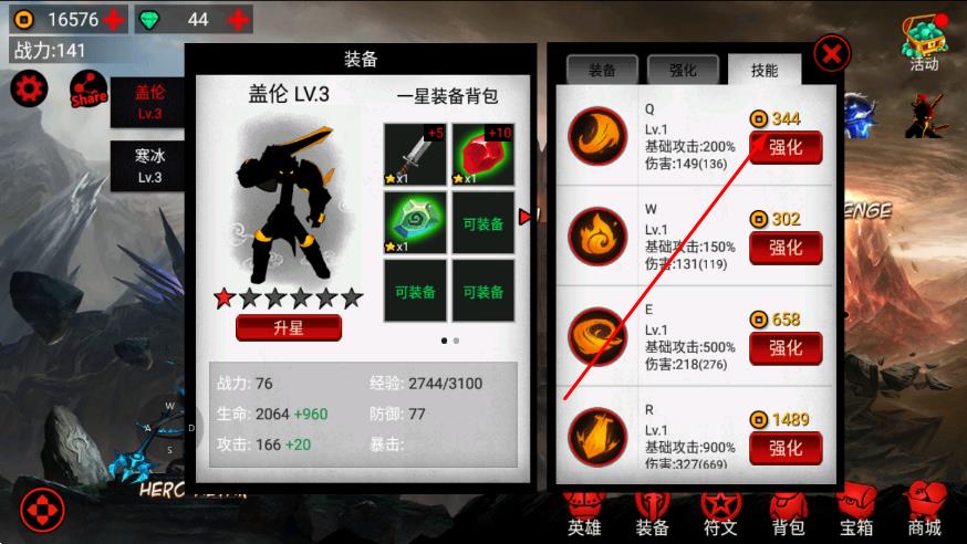 3、在技能界面中,找到想要升级的技能,点击该技能对应的强化,即可完成技能升级。