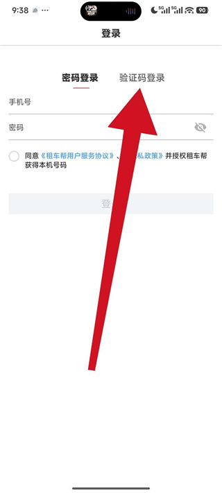 1、打开租车帮,在弹窗中点击同意,进入登录操作界面。
