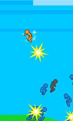 百人混战安卓中文版是一个简单的轻击动作游戏,可以跳跃并击败许多人,游戏中玩家可以通过点击两次或踩别人来跳得更高。当技能图标发光时,就有机会通过“超级跳跃”一次击败许多人。