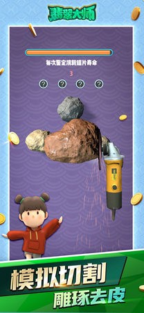 翡翠大师破解版是真实的玉石模拟器游戏,翡翠大师破解版中玩家可以挑选原型的玉石模胚,感受切割翡翠原石的无限惊喜。游戏中玩家可以凭借过人的判断力挖石寻宝,收获大自然的恩赐。卡通的细腻画面,多种多样的玩法模式,还有充满未知的游戏喜悦。玩家还能将寻得的宝石制作成精巧的玉石工艺品,可玩性超高。