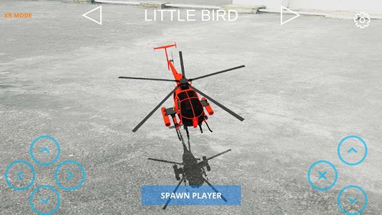 遥控直升机AR手机版让玩家实现在家中控制逼真的遥控直升机。游戏轻松操作易上手,玩家只需将直升机停机坪指向地面或地板,然后按“Spawn直升机”进行游戏即可。