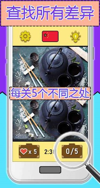 游戏有超过500关,每关5个不同之处,适合所有年龄段的用户,拉近查看隐藏的物体