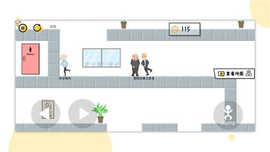 一起找厕所手游是魔性好玩的益智闯关游戏,一起找厕所手游中玩家扮演的中年大叔将在办公室中疯狂的找寻解决内急的去处,办公室内多出厕所都已经损坏不可用,只有在多种选择下理智得找到唯一正确的道路,才能解决燃眉之急。玩家可以根据地图和标志等多种提示做出判断,躲避沿途的陷阱,最终找到正确的场景。