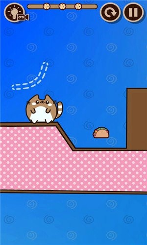 1. 画线,并利用物理的效果,来帮助果冻猫吃到食物。