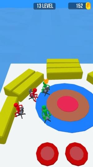 人类凳子大作战全解锁版与通常抢凳子的玩法不同,这款凳子大作战主要是在收集金币,多样化地图的设计,非常简单,并且在金币战场上,还会有炸弹的设计,你需要巧妙躲避,收集金币,避免触碰到炸弹,虽然简单,但也十分考验玩家的操作性。