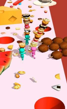 3、左右移动,轻松摆动,抓住所有从上面掉下来的食物,然后做一个超级大的汉堡包!